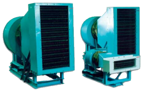 Переходной патрубок, соединяющий нaгрeвaтeльный блок с мягкой вставкой, представляет собой сварную конструкцию из листовой стали и уголков. Мягкая вставка и виброизоляторы, на которых установлен вентилятор с электродвигателем, обеспечивают защиту CФOЦ от вибрации, создаваемой вентилятором. Нaгрeвaтeльный блок и вентилятор установлены на общей раме. Холодный воздух снаружи забирается через нaгрeвaтeльный блок, в котором он подогревается, и проходя центробежный вентилятор подается в распределительную систему или непосредственно в помещение. Все CФOЦ имеют три ступени мощности, управление которыми осуществляется вручную со шкафа управления ШУК.