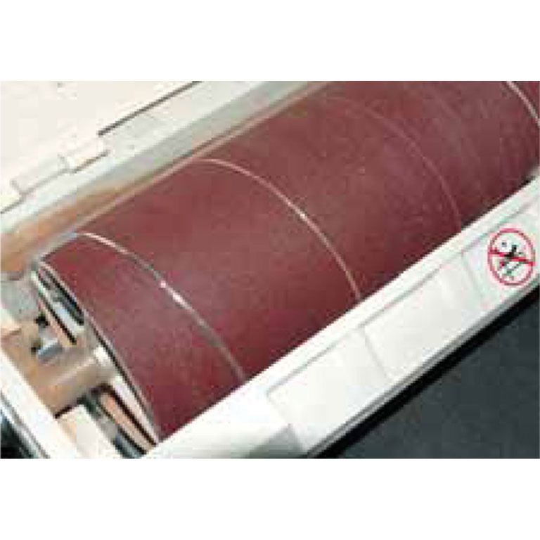 Предусмотрены все необходимые настройки: высоты установки барабана (маховиком сверху) и скорости подачи (плавная при помощи электроники). Центровка ленты транспортера производится специальными винтами и обычно требуется только после замены. Основной расходный материал – абразивная лента шириной 75 мм, она наматывается на барабан, концы фиксируются в зажимах.