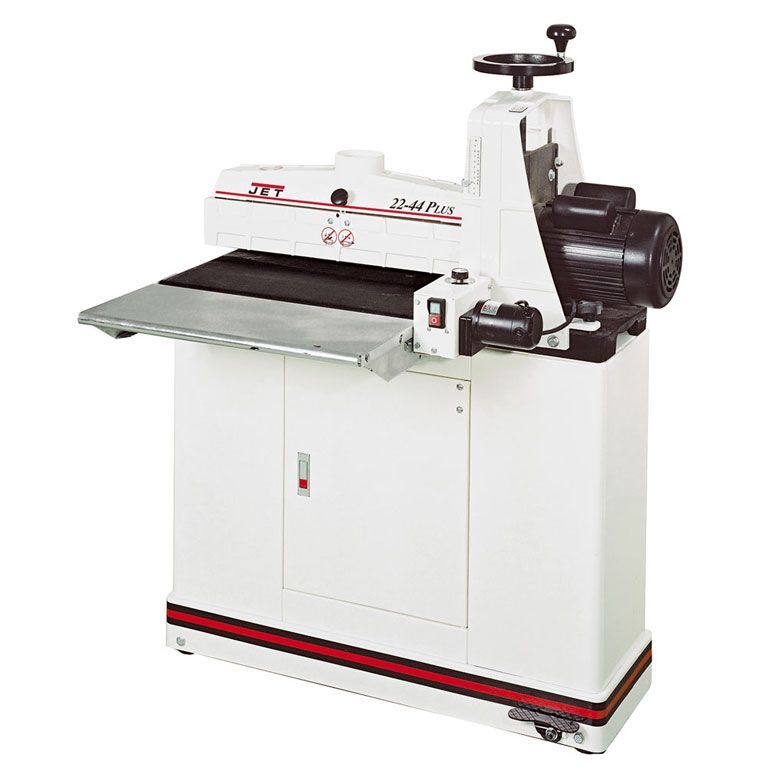 Jet 22-44 Plus барабанный шлифовальный станок с автоматической подачей заготовки транспортерной лентой. Основное назначение – шлифование и калибрование изделий из древесины. Жёсткая конструкция с чугунными основанием и кронштейном крепления консоли обеспечивает высокую точность и повторяемость, что особенно важно в условиях поточного производства. Поскольку вал закреплен с одной стороны, можно шлифовать широкие детали в два прохода с поворотом. При работе с длинными заготовками желательно установить удлинения загрузочно-разгрузочного стола (арт.982202).