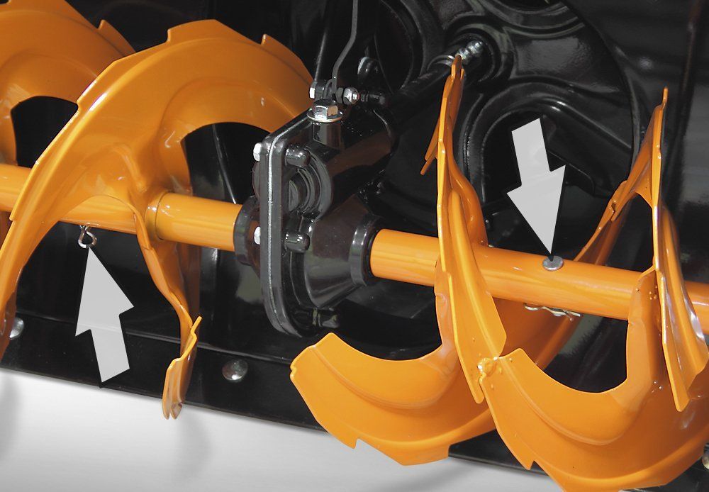 Регулируемые по высоте полозья позволяют работать на неровных поверхностях и предотвращают повреждение снегоуборщика.